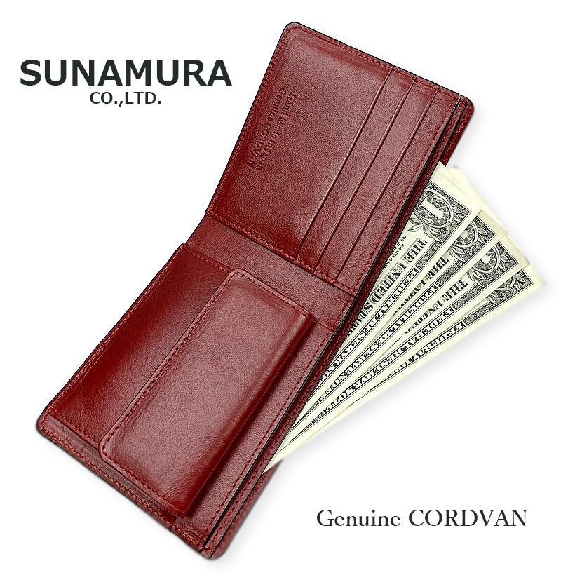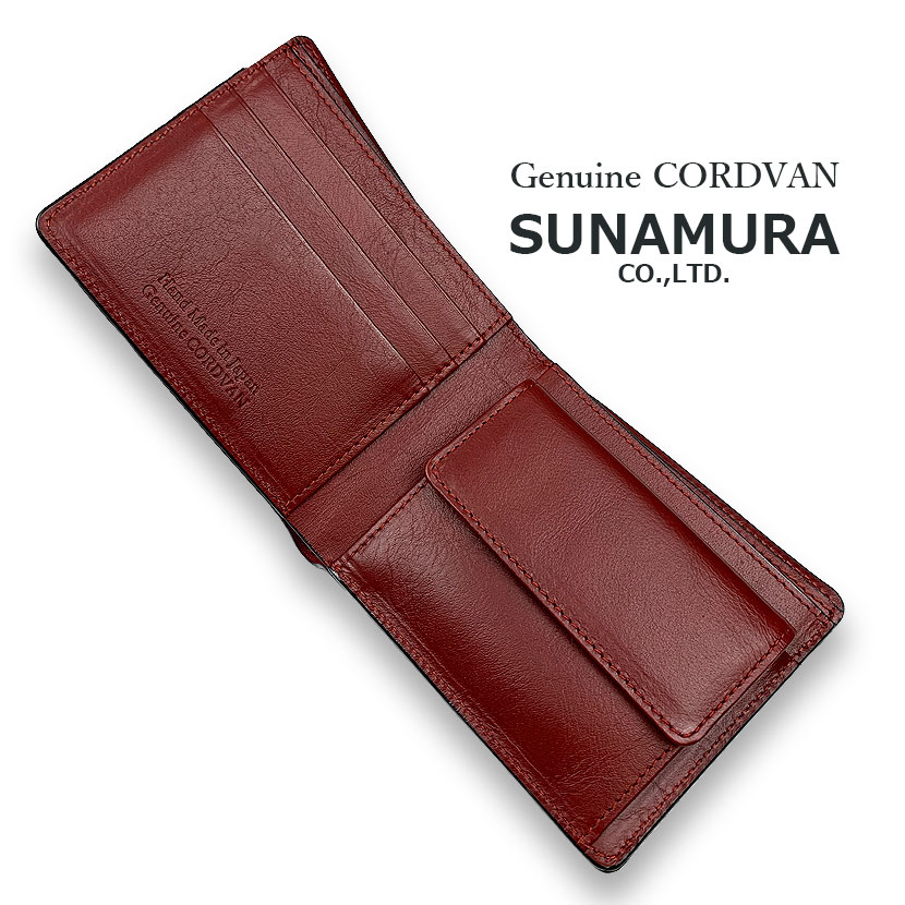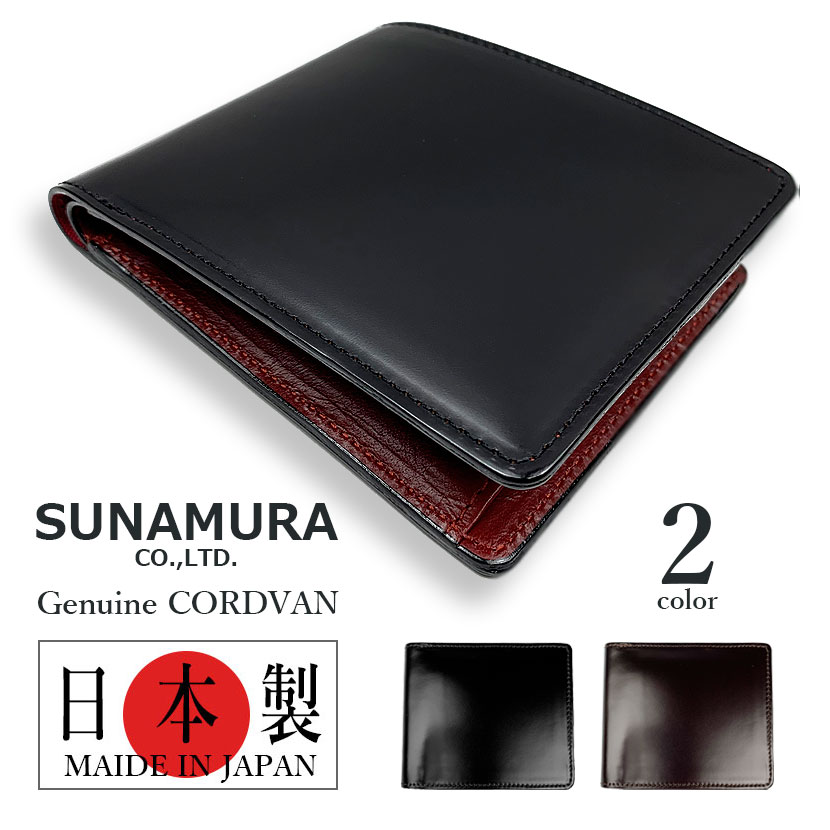 SUNAMURA 高級レザー コードバン 2つ折り財布 ショートウォレット 本革 日本製