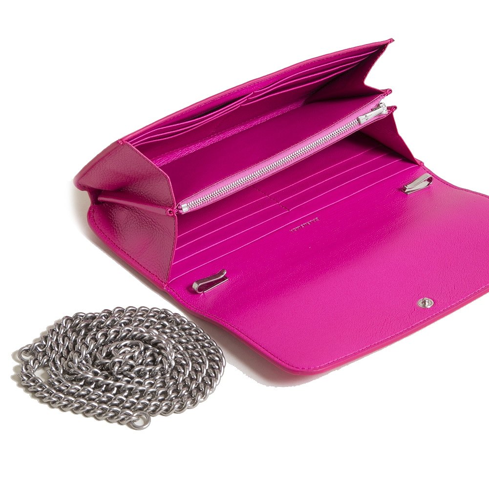 1914年スペインで誕生したクチュールブランドを代表するバレンシアガの柔らかいカーフスキンのロングウォレットです。鮮やかなピンク色が目を引きます。